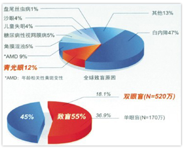 青光眼的主要危害是損害視神經(jīng),使患者出現(xiàn)視力下降、視野缺損,患者視線范圍內(nèi)出現(xiàn)盲區(qū),隨著病情的進展,黑點范圍不斷擴大,最終導(dǎo)致失明。青光眼是全球第2位致盲眼病,僅次于白內(nèi)障。一項國內(nèi)調(diào)查顯示,我國青光眼患者55%致盲,18.1%導(dǎo)致雙眼盲。