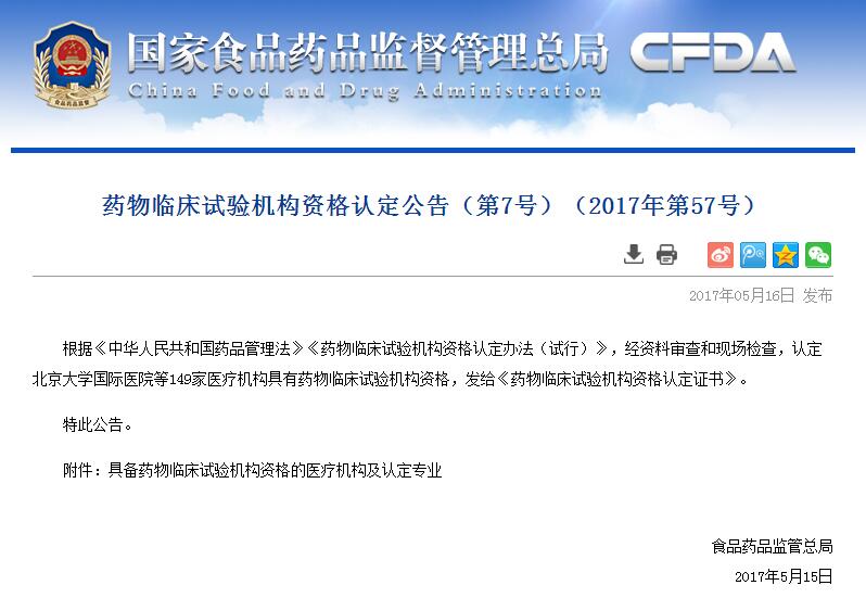 根據(jù)《藥物臨床試驗(yàn)質(zhì)量管理規(guī)范》、《藥品注冊(cè)管理辦法》《藥物臨床試驗(yàn)機(jī)構(gòu)資格認(rèn)定辦法》,經(jīng)資料審查和現(xiàn)場檢查,廈門大學(xué)附屬廈門眼科中心于2017年5月15日由國家食品藥品監(jiān)督管理總局發(fā)布的《藥物臨床試驗(yàn)機(jī)構(gòu)資格認(rèn)定公告》(第7號(hào))(2017年第57號(hào)),通告我院藥物臨床試驗(yàn)機(jī)構(gòu)順利通過國家GCP資格認(rèn)定,予以頒發(fā)《藥物臨床試驗(yàn)機(jī)構(gòu)資格認(rèn)定證書》。