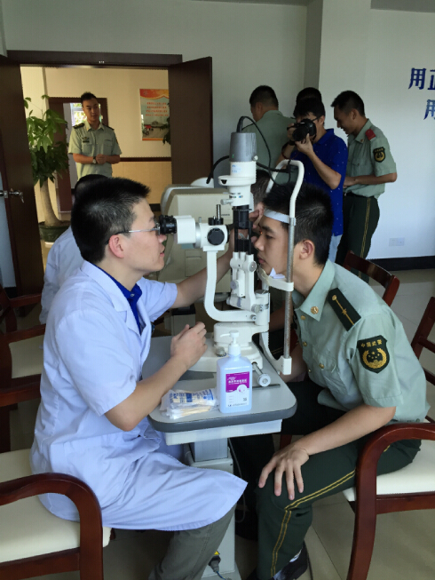 為迎接中國(guó)人民解放軍建軍88周年,秉著每年建軍節(jié)為官兵眼體檢的傳統(tǒng),7月30日下午,廈門眼科中心眼表與角膜病專家一行7人專程到思明區(qū)曾厝垵邊防所,開展健康咨詢、義診活動(dòng),并為邊防官兵贈(zèng)送了眼藥水。