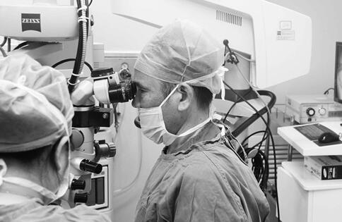 來到廈門眼科中心后,眼表及角膜病專科的學(xué)科醫(yī)生吳護(hù)平教授為老劉檢查,發(fā)現(xiàn)他角膜中央有一大小約3X3mm的小孔,“這是角膜穿孔,要保住眼球就得角膜移植。”
