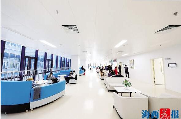 現(xiàn)代化的裝修、暖綠暖黃為主色調(diào)的環(huán)境讓人眼前一亮。科室門(mén)診和住院樓層各種指引標(biāo)識(shí)清晰明確,隨處可見(jiàn)溫馨提示,還有志愿導(dǎo)引人員。階梯形前臺(tái),讓坐在輪椅上也能與醫(yī)務(wù)人員無(wú)障礙溝通。等候就診時(shí),你可以在按摩椅上來(lái)一場(chǎng)放松之旅,也可以漫步VIP候診區(qū)長(zhǎng)廊欣賞名畫(huà)。在休息區(qū),休閑吧和兒童游樂(lè)區(qū)等可以緩解診療時(shí)帶來(lái)的陌生感和緊張感。同時(shí),五緣院區(qū)還配有超千個(gè)地面、地下停車(chē)位,方便“有車(chē)一族”到院泊車(chē)。