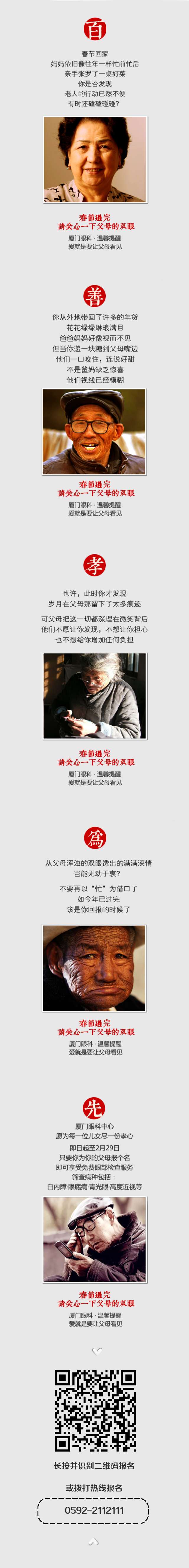 【文章導(dǎo)讀】百善孝為先 廈門眼科中心溫馨提醒:愛就是要讓父母看見 春節(jié)回家,媽媽依舊像往年一樣忙前忙后,親手張羅了一桌好菜,你是否發(fā)現(xiàn),老人的行動已然不便,有時還磕磕碰碰?