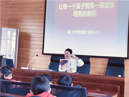 然而,在2022年新年開工第二天(1月5日),該院門診、手術(shù)室、病房并未發(fā)現(xiàn)潘美華教授忙碌的身影。她去哪兒了?原來,為貫徹落實教育部等15部門聯(lián)合印發(fā)的《兒童青少年近視防控光明行動工作方案(2021-2025年)》要求,多方位、科學、精準、長效地做好廈門市兒童青少年近視綜合防控,協(xié)助學校建立近視防控體系,潘美華親自領(lǐng)銜帶隊,深入同安區(qū)蓮花中心小學上陵小學教學點和白交祠小學教學點,為鄉(xiāng)村孩子進行視力篩查、科普宣教、贈送護眼大禮包等公益活動。