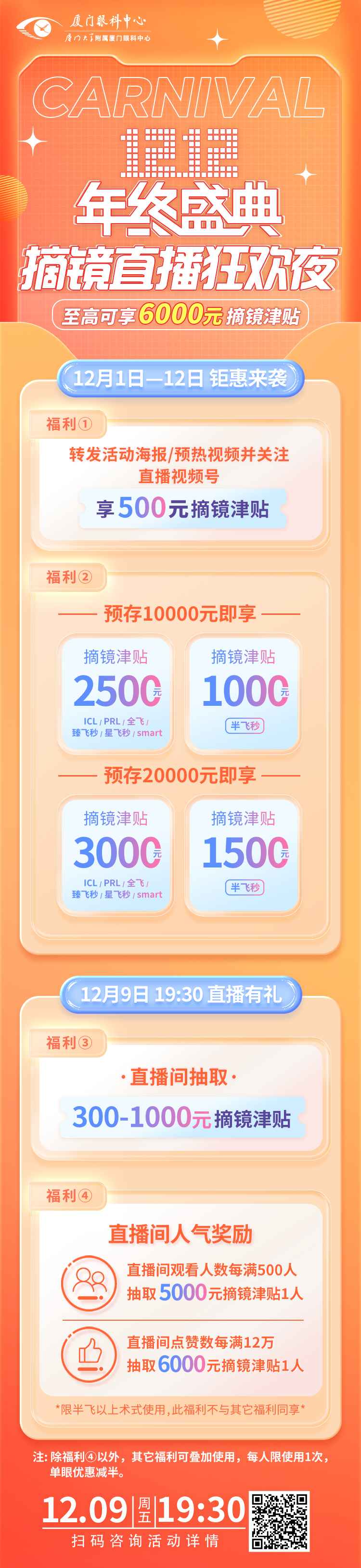 活動時間:12月1日至12月12日轉(zhuǎn)發(fā)活動海報/預熱視頻至PYQ保留3天以上,并關(guān)注直播視頻號,即享500元摘鏡津貼。