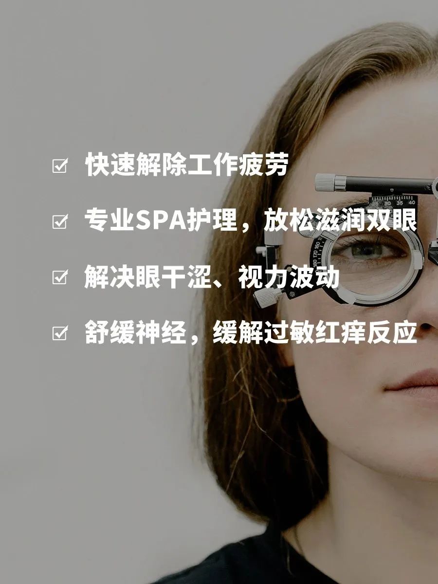 眼部SPA適用問題:疲勞干澀、眼紅血絲、眼睛發(fā)癢、眼睛浮腫、視力波動(dòng)、眼睛敏感