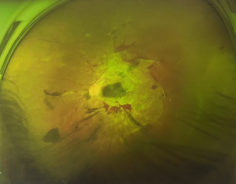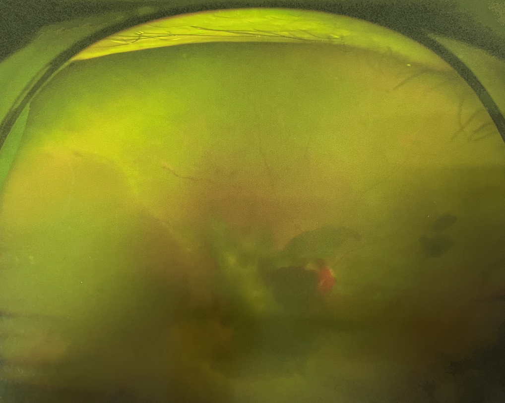 由于王女士的左眼沒有聽從醫(yī)生盡快做手術(shù)的建議,一直耽誤,從4月前的0.4視力逐漸下降到僅剩眼前手動,導(dǎo)致左眼發(fā)展到糖尿病視網(wǎng)膜病變VI期(屬于6期糖網(wǎng)中的晚期),已經(jīng)產(chǎn)生大量新生血管+纖維增值+廣泛牽拉性視網(wǎng)膜脫離,由于耽誤了病情,且病情發(fā)展異常迅速,導(dǎo)致目前左眼連保住眼球都很困難。