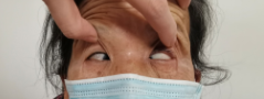 坐在謝仁藝博士面前的劉阿婆,左眼眼皮耷拉下垂,無(wú)法自主睜眼。用手把眼皮撐開,只見雙眼的黑眼珠都嚴(yán)重向內(nèi)向下偏移,左眼眶里的黑眼珠更是只余一小塊黑點(diǎn),幾乎已快要“消失不見”。