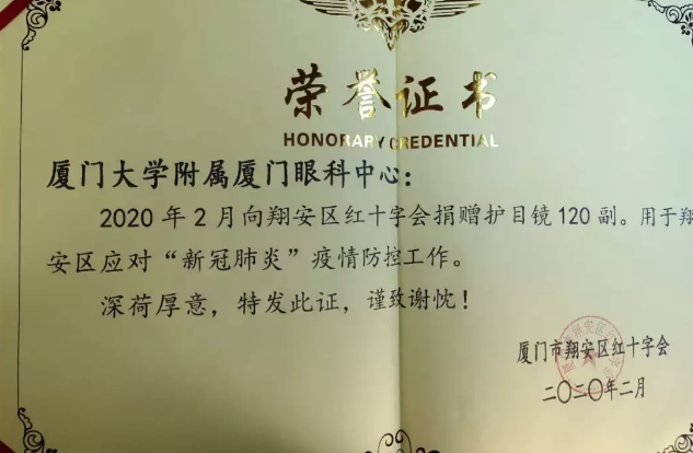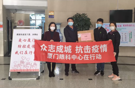 只見,數(shù)位志愿者將一箱箱護(hù)目鏡送到街道代表手中,一旁的紅色橫幅寫著“眾志成城,抗擊疫情,廈門眼科中心在行動(dòng)”的醒目大字。連日來(lái),這樣的愛心場(chǎng)景出現(xiàn)在廈門各街道,這是來(lái)自廈門大學(xué)附屬?gòu)B門眼科中心的愛心捐贈(zèng)。
