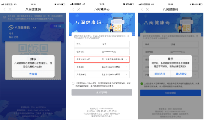 用戶登錄閩政通APP—進入“境外入閩健康碼”服務—按照要求填報姓名、證件類型、證件號碼和聯(lián)系方式等個人信息。