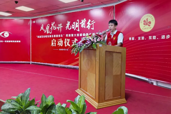 眼科醫(yī)院集團(tuán)黨委書(shū)記、鳳凰花“光明先鋒”志愿服務(wù)隊(duì)隊(duì)長(zhǎng)陳逸恬,廈門(mén)眼科中心執(zhí)行總經(jīng)理姚鄭玲玲,廈門(mén)眼科中心運(yùn)營(yíng)總監(jiān)王劍鋒,廈門(mén)眼科中心眼表及角膜病專(zhuān)科商旭敏博士作為志愿者代表參與儀式。