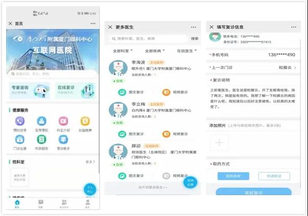 “廈門(mén)眼科中心互聯(lián)網(wǎng)醫(yī)院”一站式解決掛號(hào)難、繳費(fèi)難、取藥難等困擾!更開(kāi)通網(wǎng)上復(fù)診通道,同步門(mén)診歷史記錄,幫助醫(yī)生診療,實(shí)現(xiàn)在線(xiàn)復(fù)診!