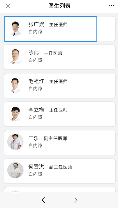 點(diǎn)擊“預(yù)約掛號(hào)”,選擇需要預(yù)約院區(qū)(如五緣院區(qū)),搜索或者選擇需要預(yù)約的科室(如白內(nèi)障科),選擇需要預(yù)約的醫(yī)生(如張廣斌醫(yī)生),確認(rèn)預(yù)約時(shí)間