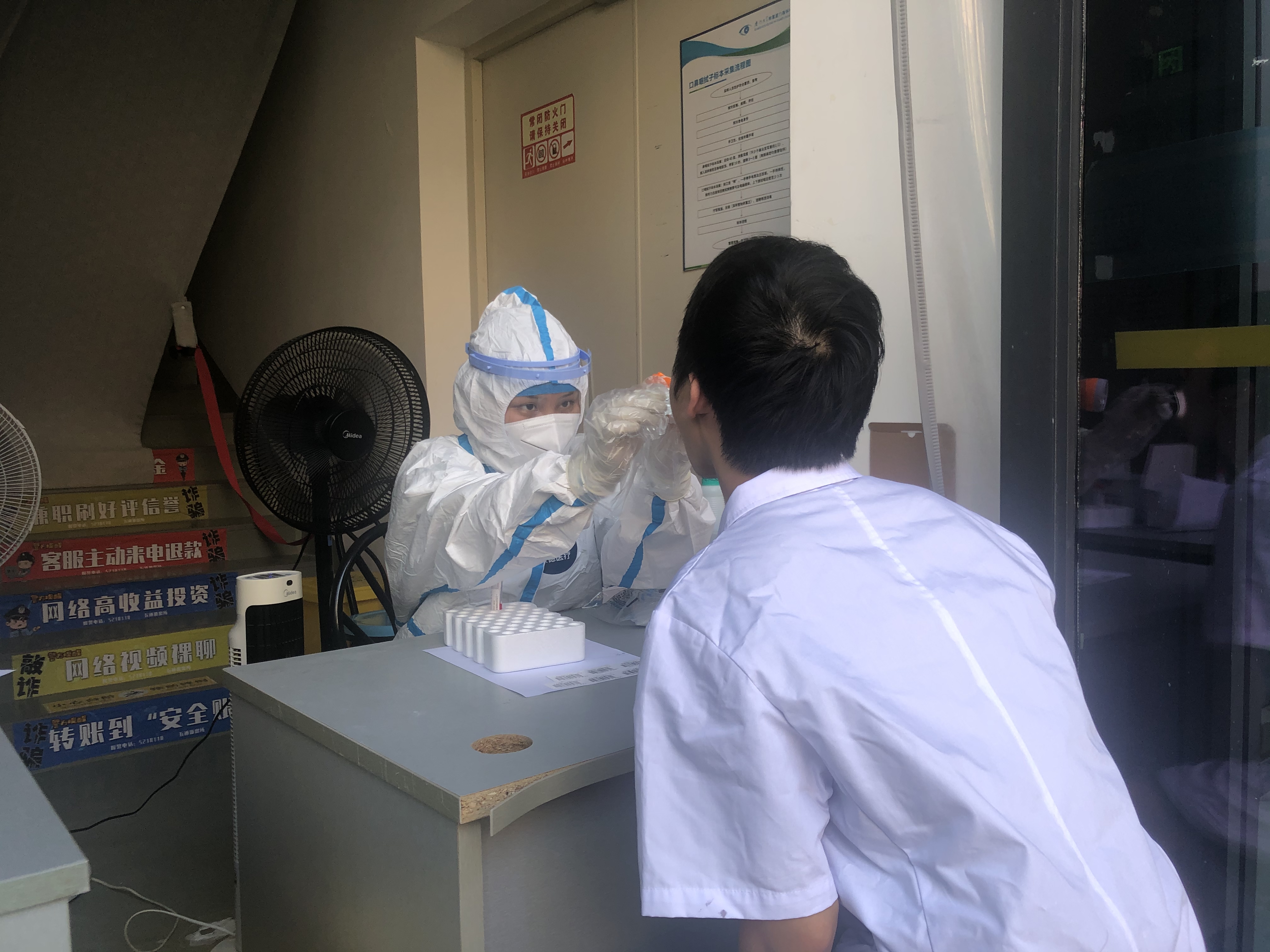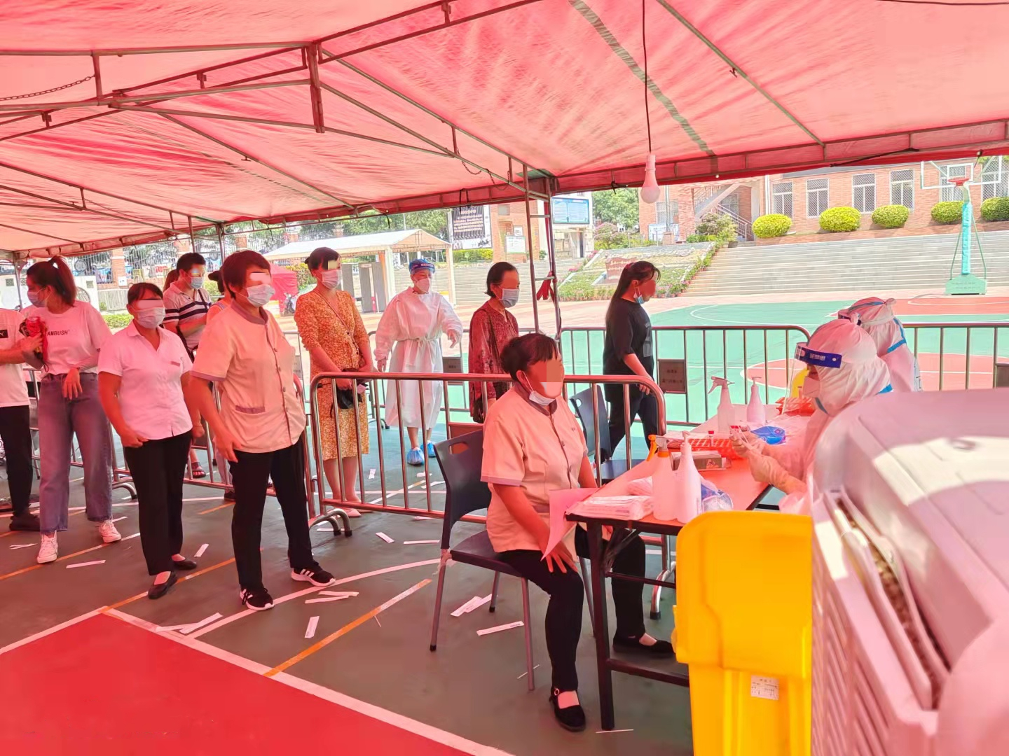 廈門眼科中心思北、五緣兩院區(qū)均為廈門市新冠病毒核酸檢測醫(yī)療機構(gòu)服務點。守土有責,肩負全民核酸采樣重任。為助力全民核酸檢測,提高檢測效率,方便市民群眾來院進行核酸采集檢測,廈門眼科中心思北、五緣兩院區(qū)均第 一時間分別優(yōu)化核酸檢測流程,并安排工作人員現(xiàn)場督察引導。檢測現(xiàn)場,市民在工作人員的引導下,有序進行采集工作。