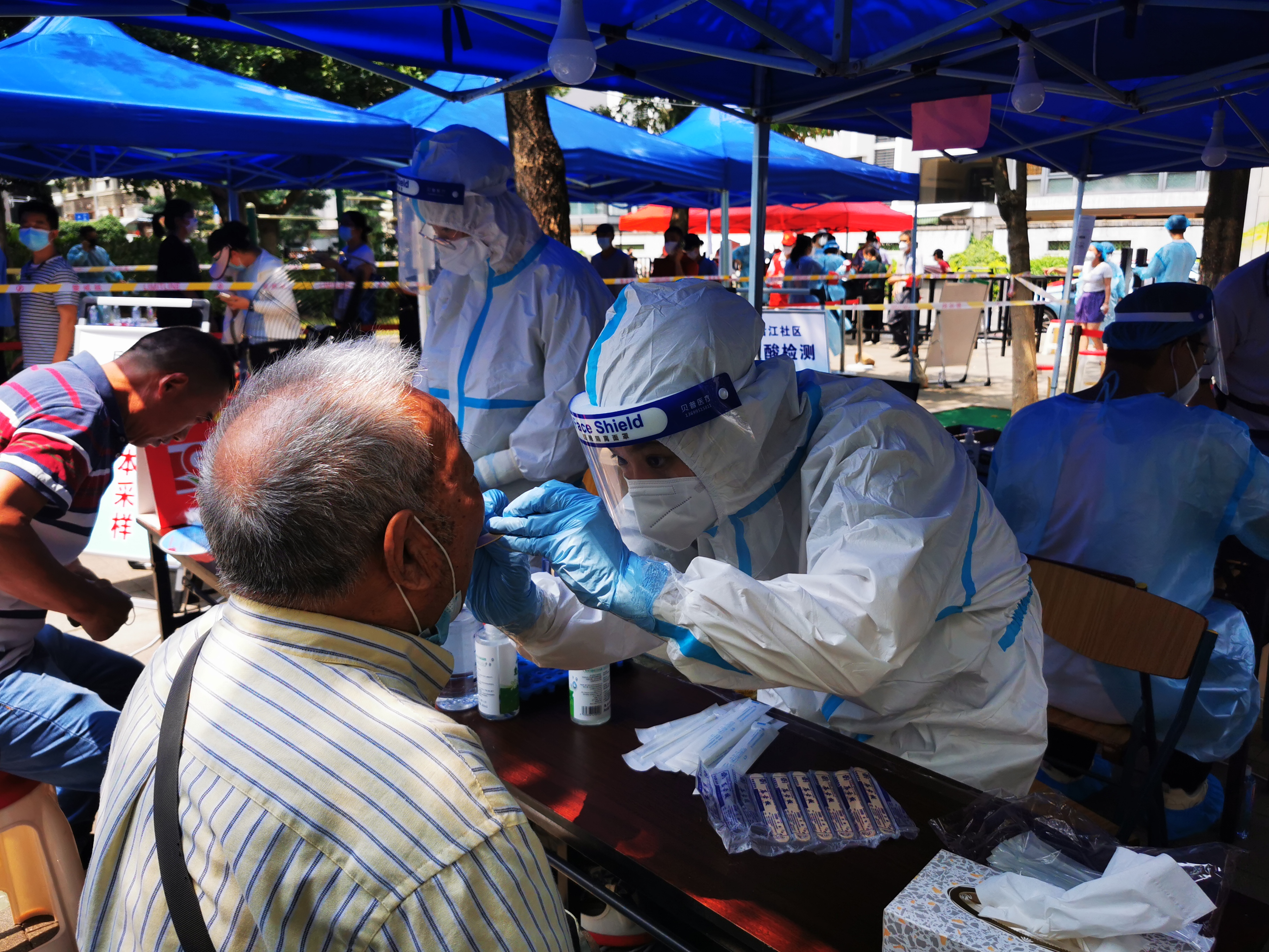 9月14日、15日,廈門眼科中心組織醫(yī)護人員,分批前往廈門何厝社區(qū)、萬壽陽臺山、祥濱公園、梅園公園等地點進行核酸采樣。