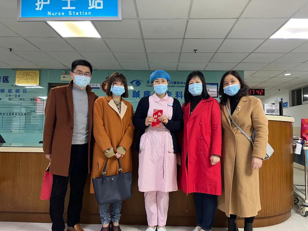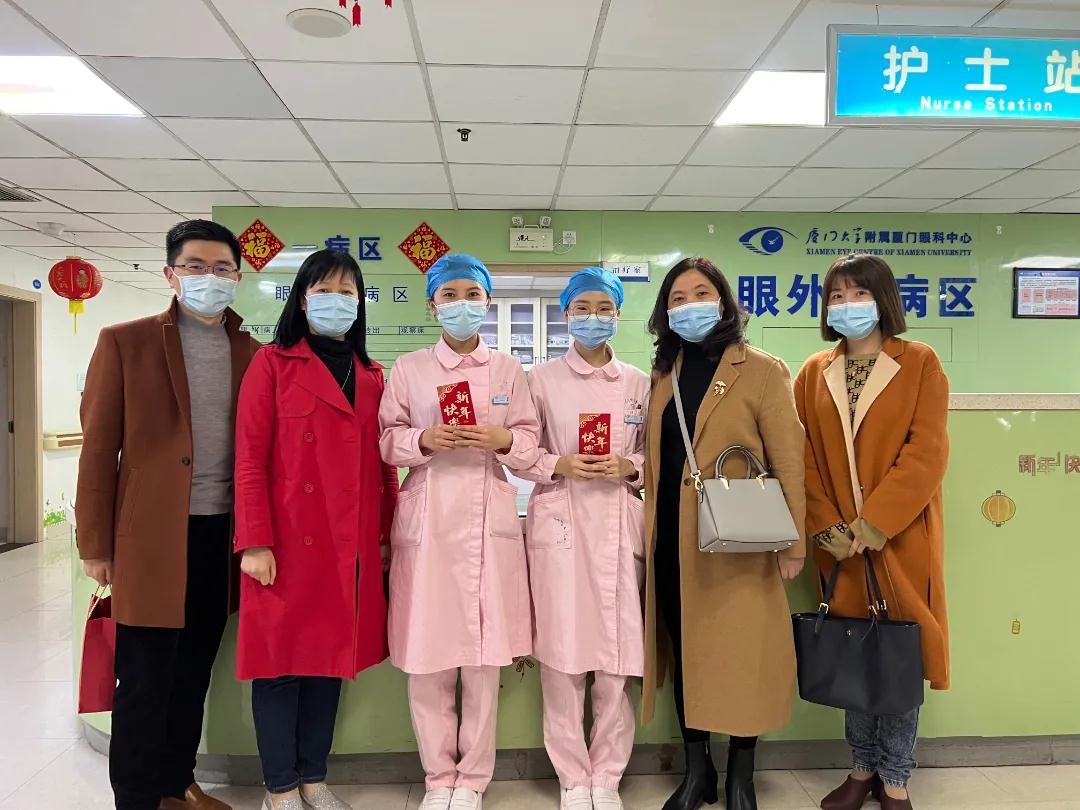 春暖大地百花艷,福滿人間萬(wàn)象新。在舉家團(tuán)圓的時(shí)刻,仍有人堅(jiān)守在工作崗位。除夕當(dāng)天,廈門眼科中心執(zhí)行總經(jīng)理姚鄭玲玲、副總經(jīng)理賴瑋玲、工會(huì)主席張美嫦、人力資源部總監(jiān)石磊等院領(lǐng)導(dǎo)班子成員深入病區(qū),看望并慰問春節(jié)期間堅(jiān)守一線的醫(yī)務(wù)人員、值班后勤人員,為他們送上真切的關(guān)懷與新春的祝福。感謝他們節(jié)日期間恪守盡職,就他們?cè)谶^去一年中的辛勤付出表示肯定,對(duì)疫情防控緊要關(guān)頭做出的積極貢獻(xiàn)致以崇高的敬意。