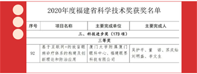 廈門眼科中心榮獲福建省科學(xué)技術(shù)獎(jiǎng)