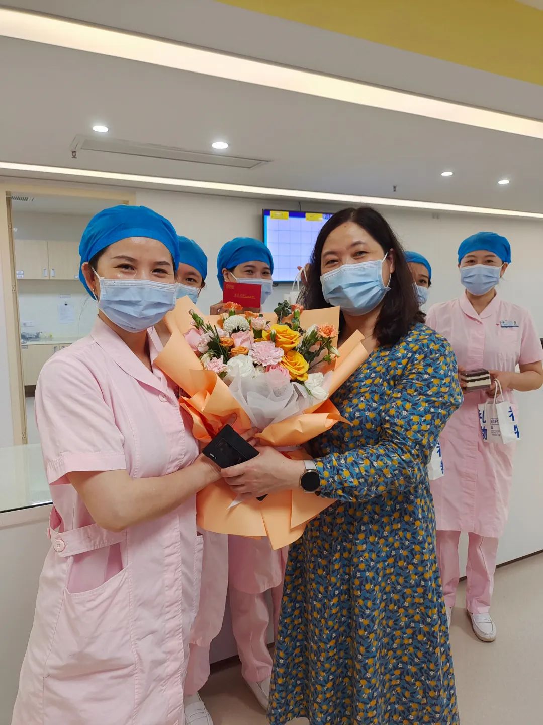 護理人員非常感謝院領(lǐng)導(dǎo)、護理部及工會對大家的節(jié)日祝福,喜笑顏開地與領(lǐng)導(dǎo)們合影留念,到處充滿了節(jié)日的喜慶氣氛。院領(lǐng)導(dǎo)的每一句叮囑,都體現(xiàn)了對臨床一線護理人員的濃濃關(guān)愛,激勵著在場每一位護士。