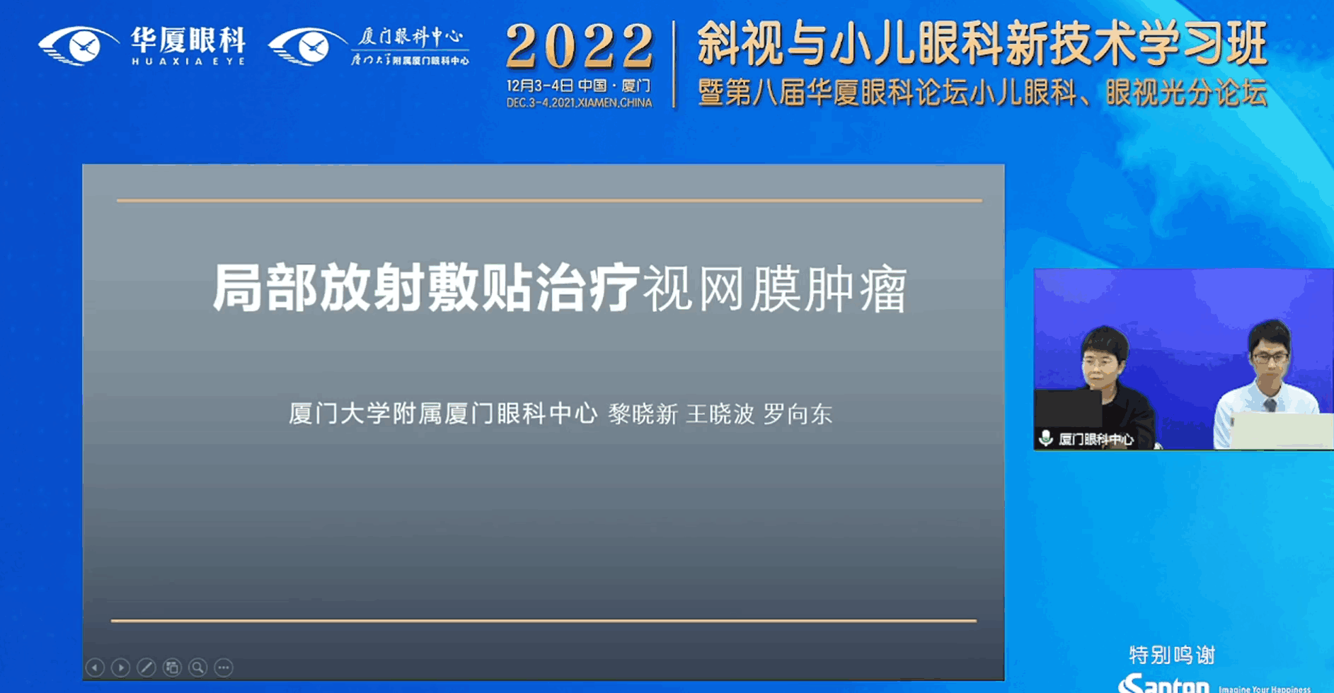 廈門(mén)眼科中心閃耀“【文章導(dǎo)讀】??12月4日,由廈門(mén)大學(xué)附屬?gòu)B門(mén)眼科中心主辦的斜視與小兒眼科新技術(shù)學(xué)習(xí)班暨第八屆小兒眼科、眼視光分論壇圓滿(mǎn)落下帷幕。 此次論壇為期兩天,以線上直播的方式進(jìn)行。廈門(mén)眼科