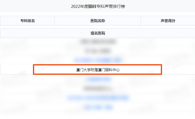 11月25日,由國內(nèi)著名同行專家擔任評審的復旦版《2022年度中國醫(yī)院綜合排行榜》和復旦版《2022年度中國醫(yī)院??坡曌u排行榜》在上海市發(fā)布。廈門眼科中心榮獲2022年度眼科??坡曌u排行榜提名,是全福建省唯一上榜的??漆t(yī)院,且已經(jīng)是廈門眼科中心連續(xù)第五年上榜!