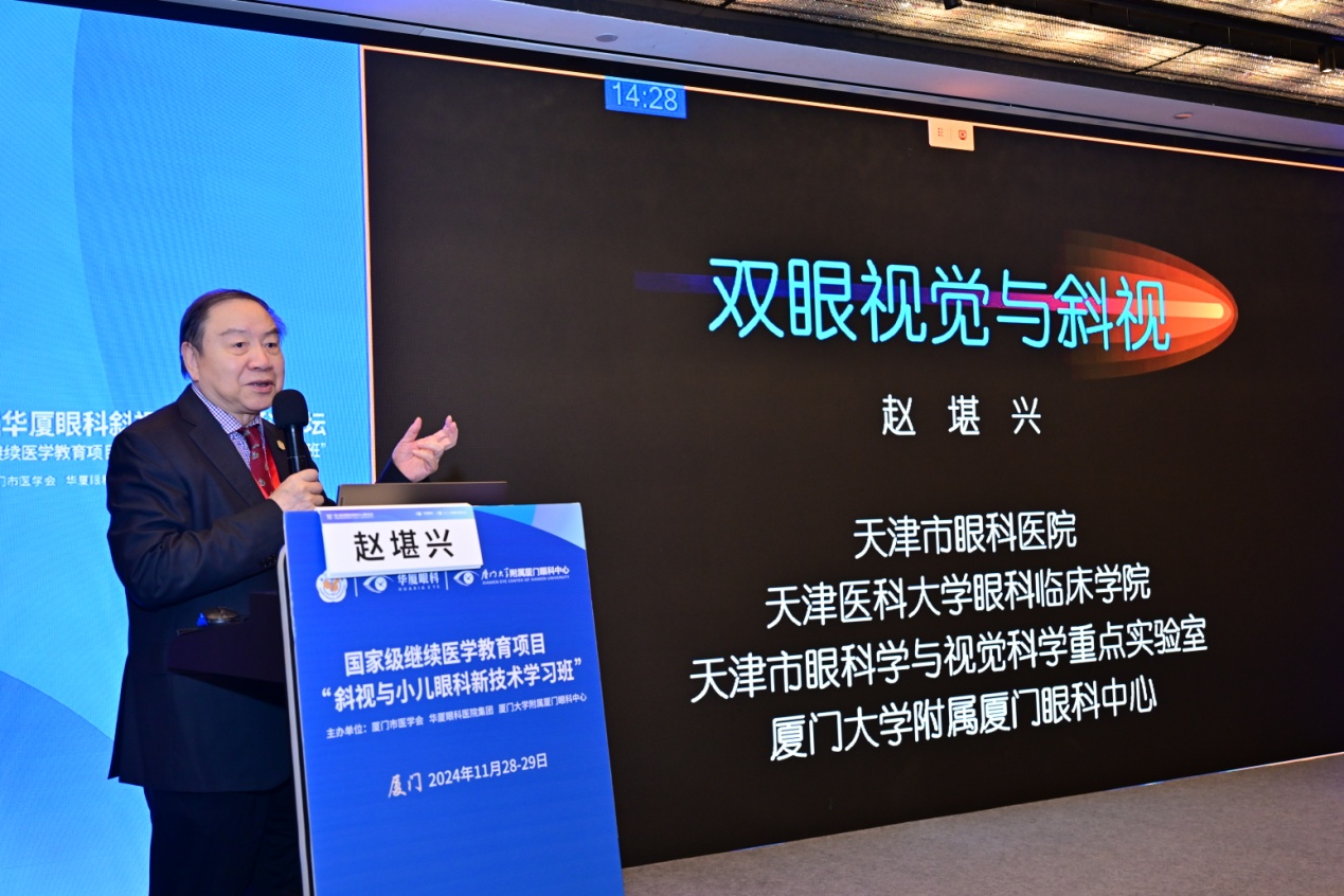 兒童階段是全生命周期眼健康管理的“黃金期”,事關國家和民族未來。開幕儀式上,國際眼科科學院院士、華廈眼科醫(yī)院集團專家委員會主席趙堪興教授代表致歡迎辭。趙堪興教授表示,多年來,為更好地推動兒童青少年近視防治工作,守護兒童青少年的眼健康,華廈眼科醫(yī)院集團、廈門眼科中心斜視與小兒眼科始終堅持聚焦近視防控和兒童致盲眼病防治,著力眼科人才培養(yǎng),不斷提升臨床診療水平,全力為兒童青少年眼病防治和眼健康發(fā)育保駕護航。此外,醫(yī)院連續(xù)多年用心舉辦兒童眼病論壇,以內涵豐厚的學術交流為紐帶,不斷助力推動兒童眼病基礎研究高質量發(fā)展,提升基層醫(yī)療機構的服務品質,推動醫(yī)療服務同質化。