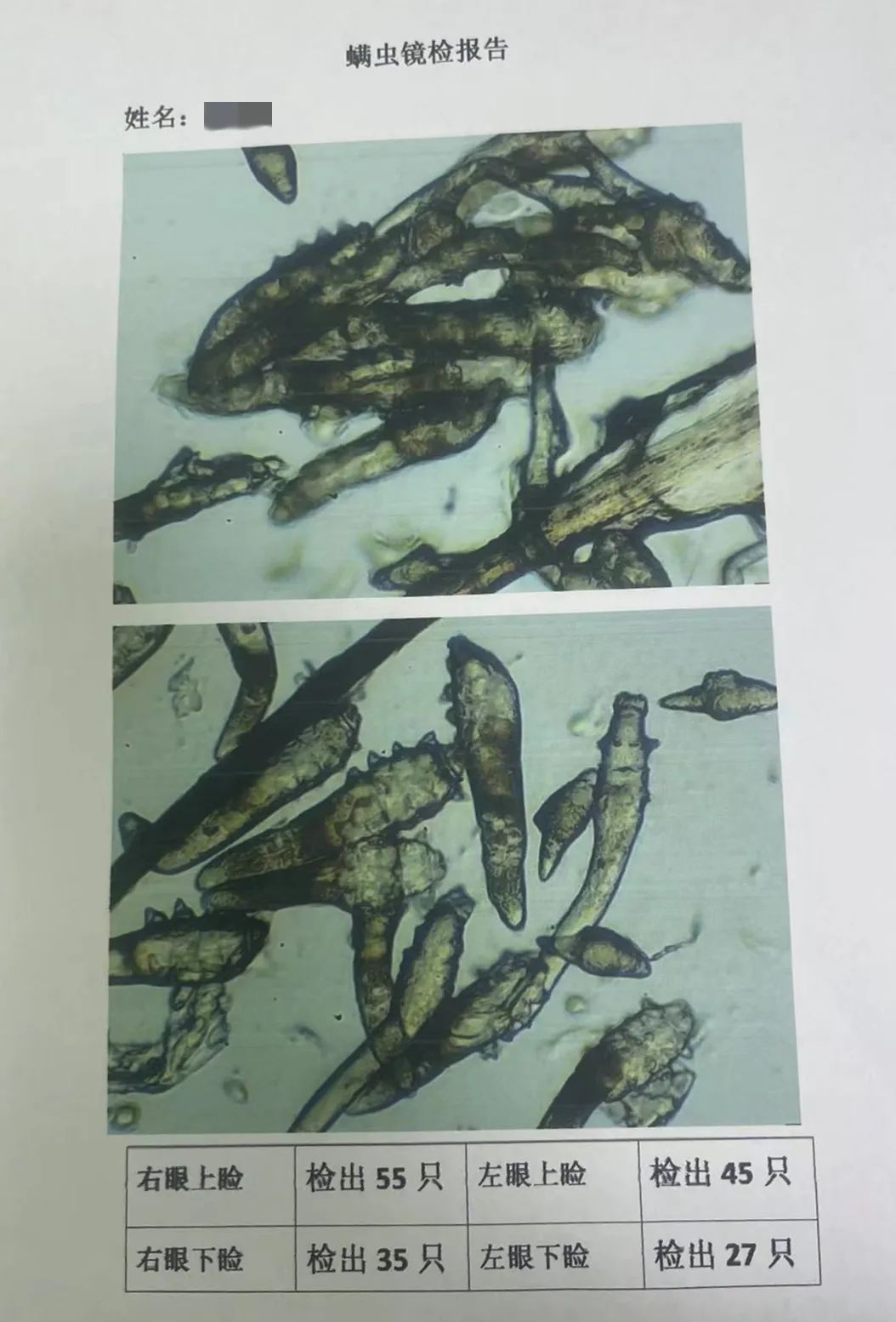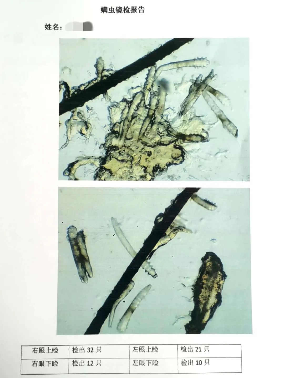 2、廈門一阿姨眼睛不適,查出大量螨蟲