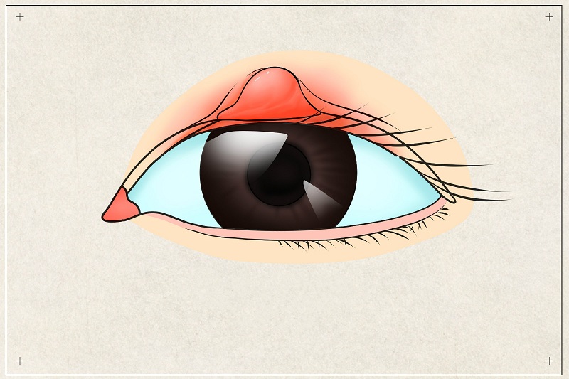 3、翻轉(zhuǎn)眼瞼在腫塊在結(jié)膜面,可見紫紅色或灰紅色局限隆起。如有繼發(fā)感染,可演變成麥粒腫,則在形成上與內(nèi)麥粒腫很難區(qū)別。