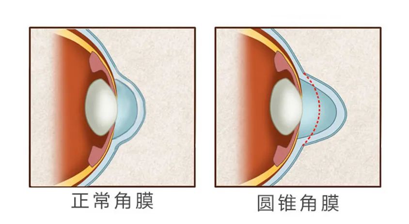 圓錐角膜其實(shí)是一種非炎癥性、慢性、進(jìn)展性的角膜異常病變,角膜中央組織逐漸變薄,導(dǎo)致角膜由外圍向內(nèi)收縮、下塌,而形成向外凸出的圓錐形狀。形象點(diǎn)說(shuō),圓錐角膜就是角膜向前突出,看上去就像一個(gè)圓錐體。