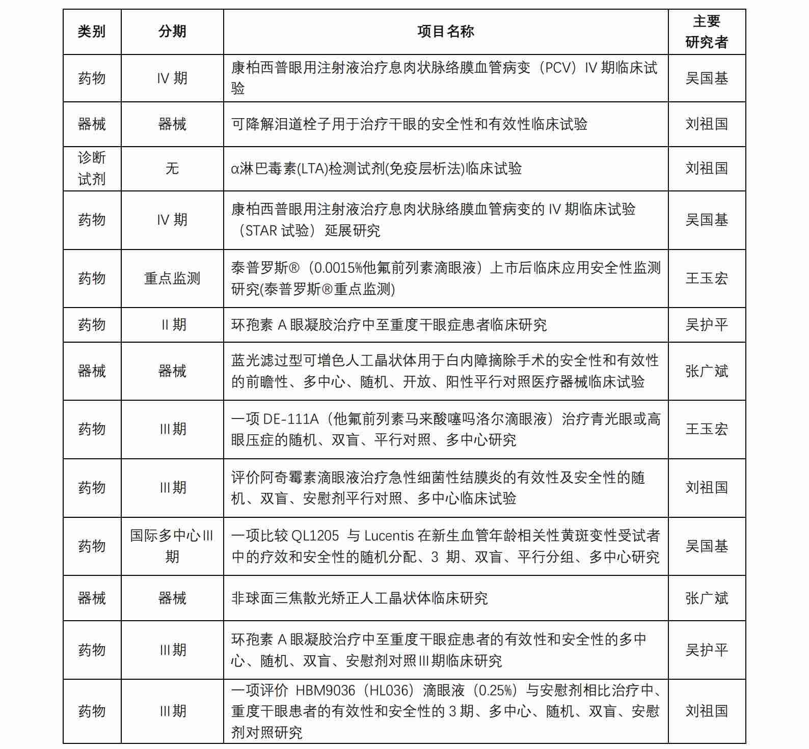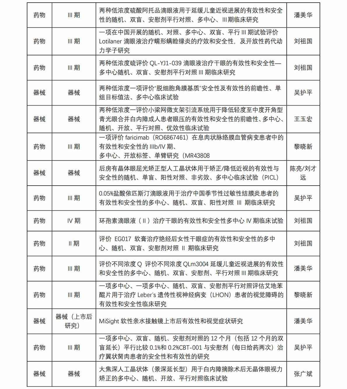廈門大學附屬廈門眼科中心藥物臨床試驗機構(gòu)(以下簡稱“機構(gòu)”)于 2017 年獲得國家藥物臨床試驗(眼科專業(yè))資格。機構(gòu)可承擔新藥Ⅱ、Ⅲ、Ⅳ期臨床試驗,也是承擔醫(yī)療器械、體外 診斷試劑的重要研究機構(gòu)。從獲批至今,機構(gòu)已承接臨床試驗項目共計 45 項(包含藥物臨床試驗項目 31 項,器械臨床試驗項目 13 項 ,體外診斷試劑試驗項目 1 項), 由本中心作為組長單位牽頭的項目共計 8 項。